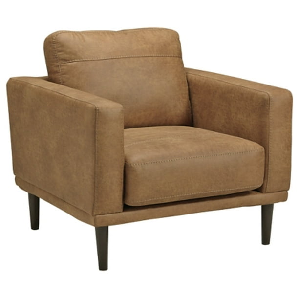 Signature Design By Ashley Arroyo Mid Century Modern Faux Leather Chair Caramel Brown Walmart Com